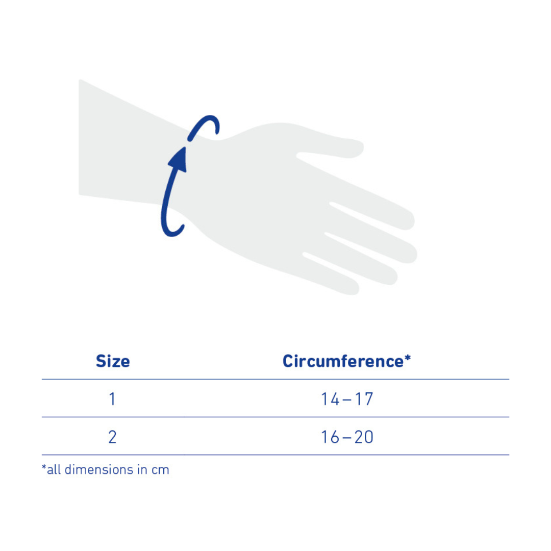 - Easy to put on and take off with one hand thanks to practical fastening solution and hand icon on the palm of the hand for orientation