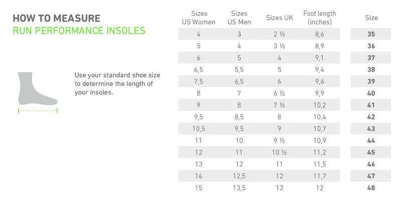 The innovative running insoles Run Performance Insoles ensure a soft and gentle step while running. They support the course of movement and increase comfort in sports shoes. The flexible insole core supports and guides the foot from below.